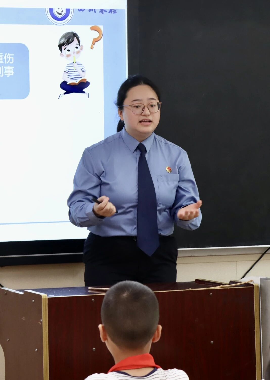 案例里藏着“防欺凌密码”。“给同学起侮辱性绰号算欺凌吗?”“看到有人故意藏同学的课本该怎么办?”检察官没有讲枯燥法条,而是把孩子们可能遇到的真实场景搬进课堂,用一个个接地气的小故事,解析“校园欺凌的边界”“被欺凌时的正确应对”。一双双稚嫩好奇的眼睛被台上生动有趣的释法说理吸引,他们时而为案例中“被欺负的同学”皱起眉头,时而为“勇敢说不”的办法点头——原来保护自己、尊重他人,还有这么多“小技巧”!